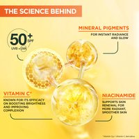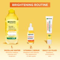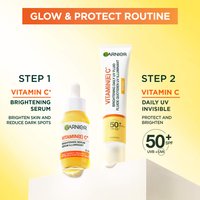 Protect your skin daily with the Garnier Vitamin C Daily UV Brightening Fluid Invisible SPF50+, your essential shield against harmful UV rays and sun damage. This innovative, lightweight, no white cast formula is expertly created with vitamin e, glycerin and powerful SPF50 to help defend against UVB and UVA rays with a superior instant glow finish. Beyond superior sun protection, it harnesses the glowing efficacy of Vitamin C, a renowned ingredient celebrated for enhancing complexion and promoting a radiant, healthy-looking glow.