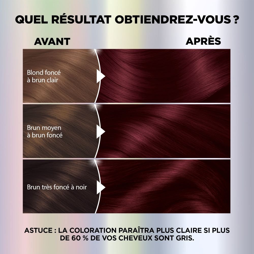 Une couleur ultra-vibrante en un seul geste : Grâce à sa technologie de personnalisation de la couleur, Nutrisse Ultra Color révèle des couleurs expressives et des reflets, même sur les cheveux naturellement foncés, pour tous les types de cheveux et toutes les textures. Formule non salissante et non goutteuse pour une expérience de coloration agréable.