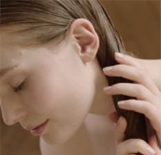 ÉTAPE 1 Après avoir séché vos cheveux, appliquez une quantité d'un quart d'huile dans vos paumes. |