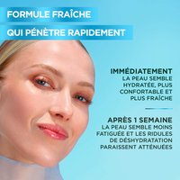 Hydratation 48h, peau repulpée d'humidité et barrière cutanée réparée, dans une formule fraîche à absorption rapide.